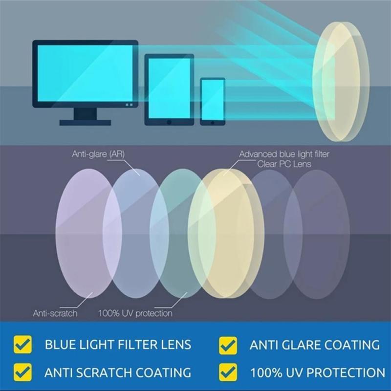 Cos'e la luce blu? La luce blu ha una lunghezza d'onda molto corta e quindi produce una quantita' maggiore di energia. Gli studi suggeriscono che, nel tempo, l'esposizione all'estremita‘ blu dello spettro luminoso potrebbe causare gravi danni a lungo termine agli occhi. "Quasi il 70% delle persone soffre di affaticamento degli occhi digitale a causa dell'uso prolungato di dispositivi elettronici." - Il Consiglio della visione. Le nostre lenti Blue Blocker sono lenti praticamente trasparenti realizzate con uno speciale polimero che blocca la luce blu che impedisce alla luce blu e ai raggi UV di passare attraverso l'obiettivo. Occhiali da gioco per lettura computer con blocco della luce blu per bambini (eta' 7-12) - Verde scuro