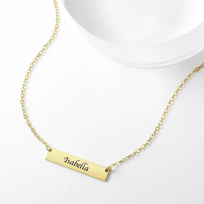 Collana Da Bar Con Incisione Per Bambini Placcata In Oro 14k
