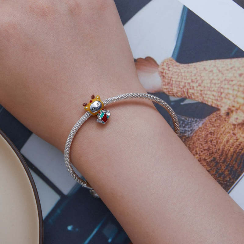 Ciondolo Smaltato A Forma Di Gatto Di Natale, Regali Di Natale In Argento