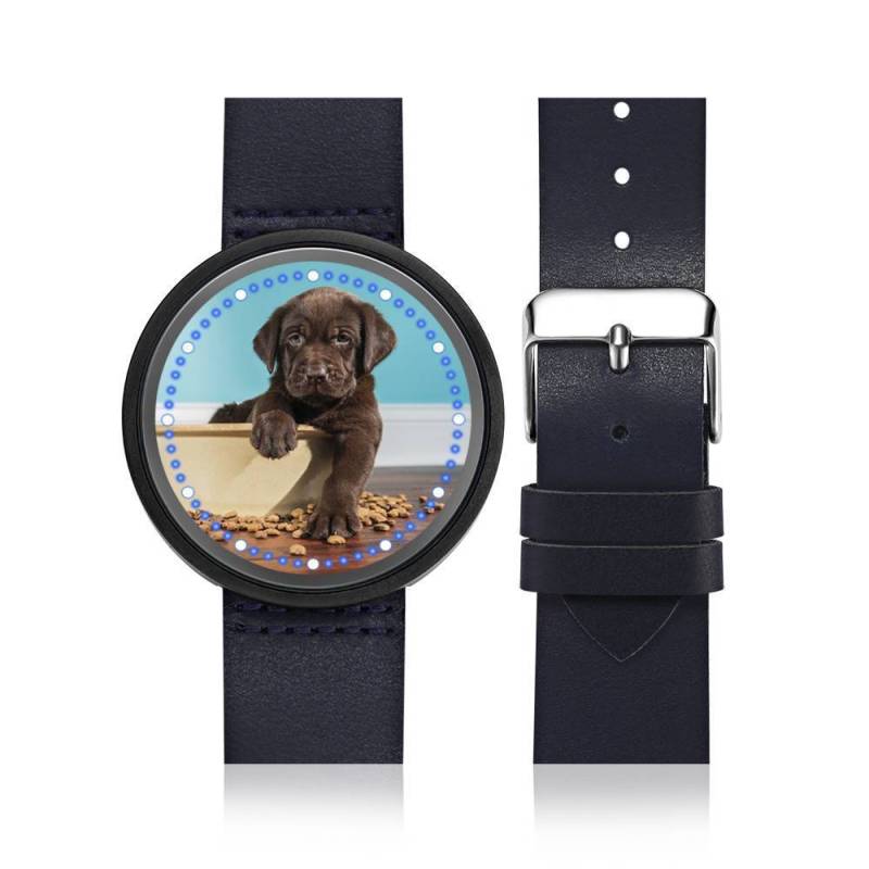 Orologio Scolpito Personalizzato,Toccare L'orologio A Led Che Emette Luce Cinturino In Pelle Blu