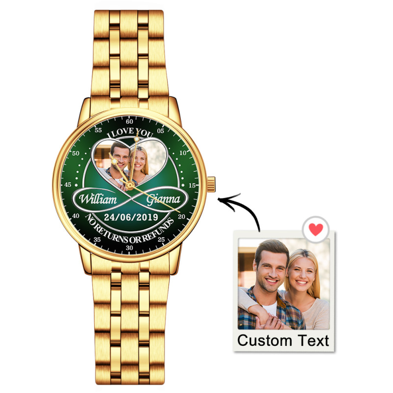 Celebra il tuo amore con i nostri orologi di coppia personalizzabili con foto. Caratterizzati da un elegante design in acciaio inossidabile, questi orologi Infinity possono essere personalizzati con le tue foto preferite, rendendoli un regalo davvero significativo. Disponibili in vari stili, questi orologi sono perfetti per le coppie che cercano un regalo unico e sentito. Esprimi il tuo legame e crea ricordi indelebili con un orologio elegante e personale.