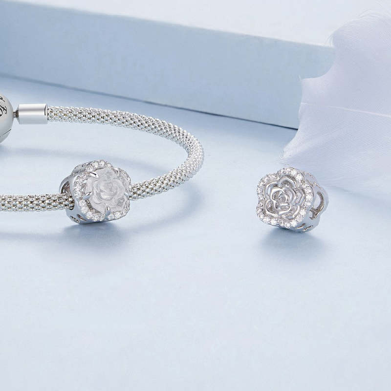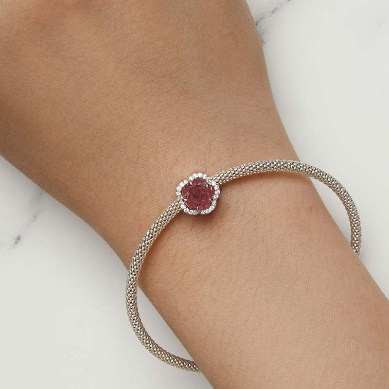 Charm Rosa de Cristal Plata