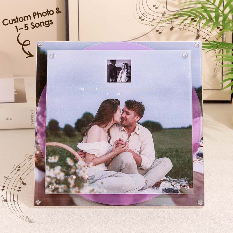 Realizzata in acrilico trasparente di alta qualità, la cornice mostra magnificamente una foto principale di grandi dimensioni e 8musica intercambiabile dischi, creando un ricordo interattivo ed emotivo. Perfetto come regalo personalizzato per anniversari, matrimoni o Natale.