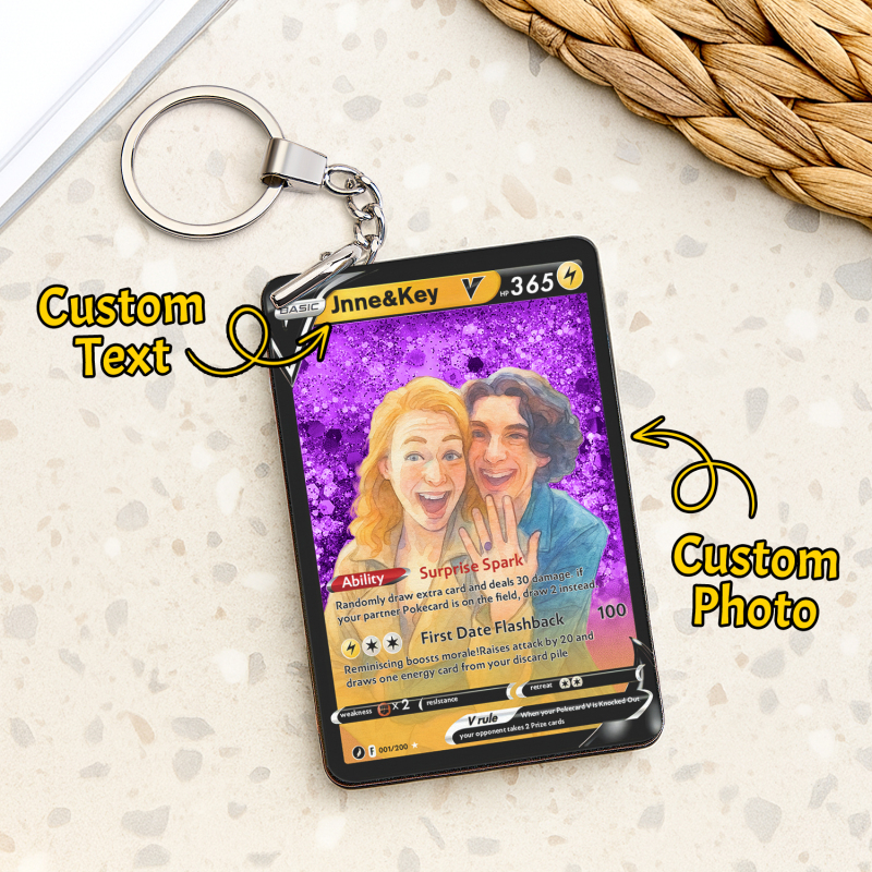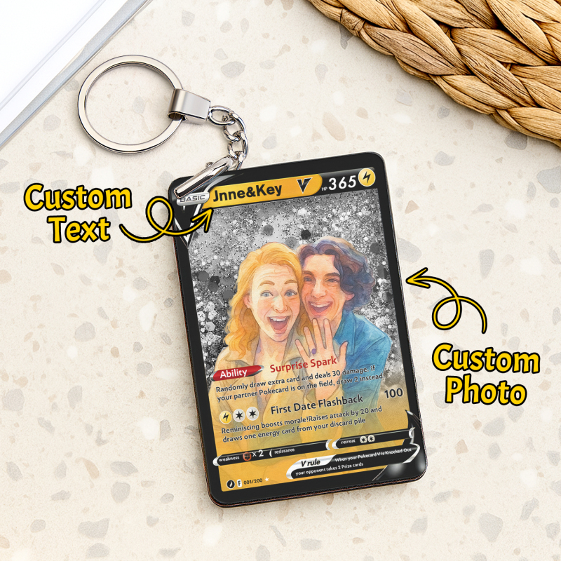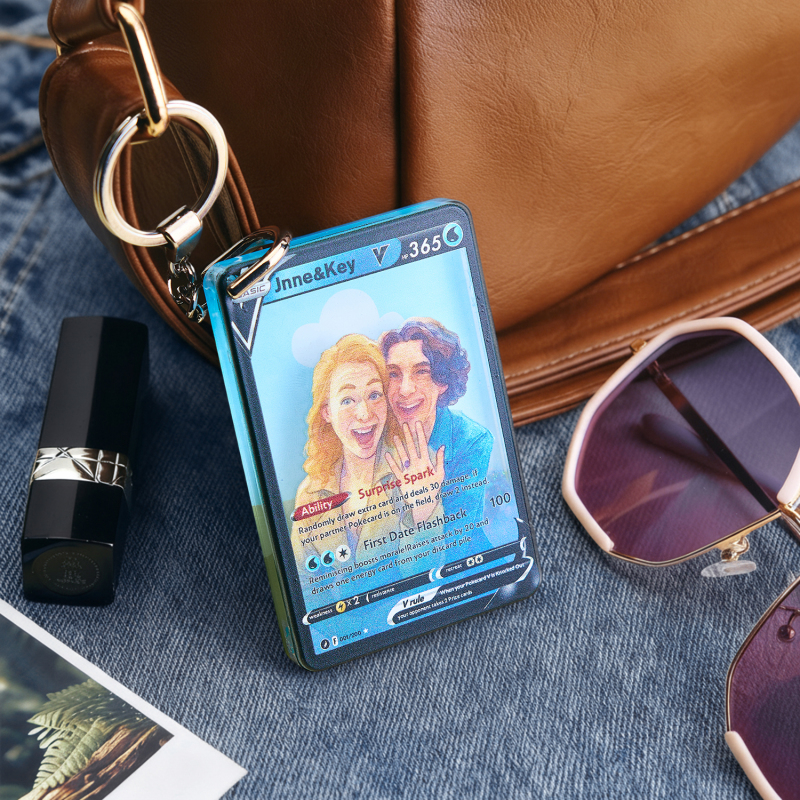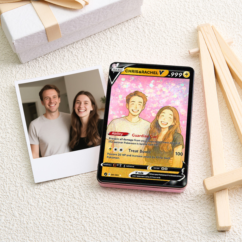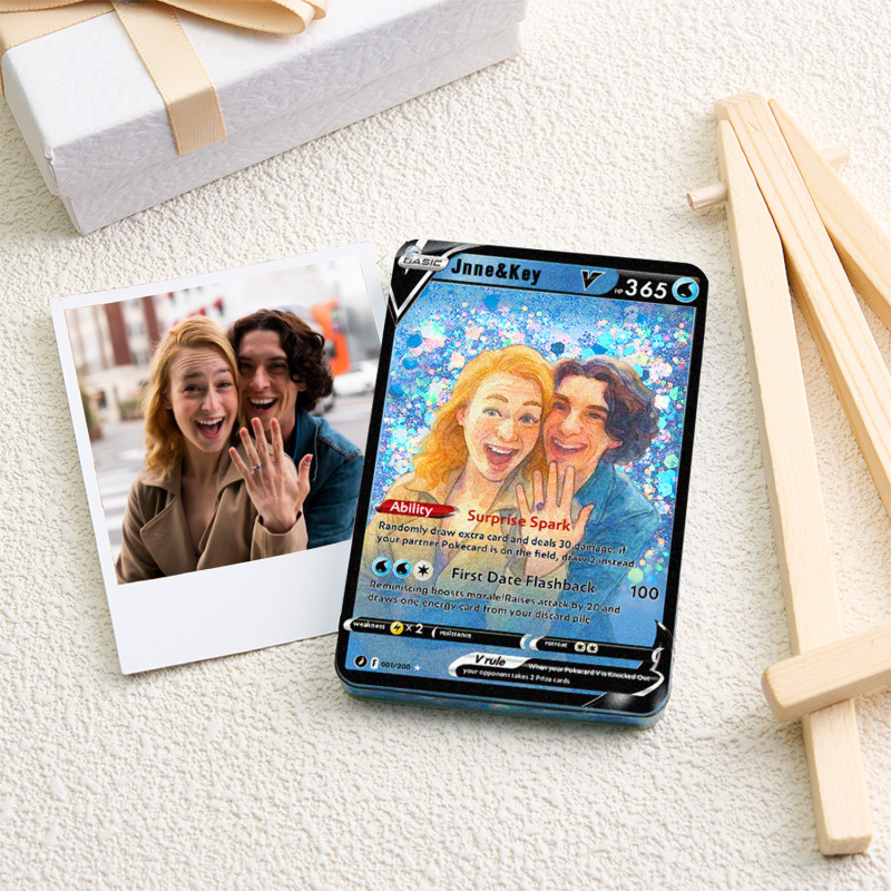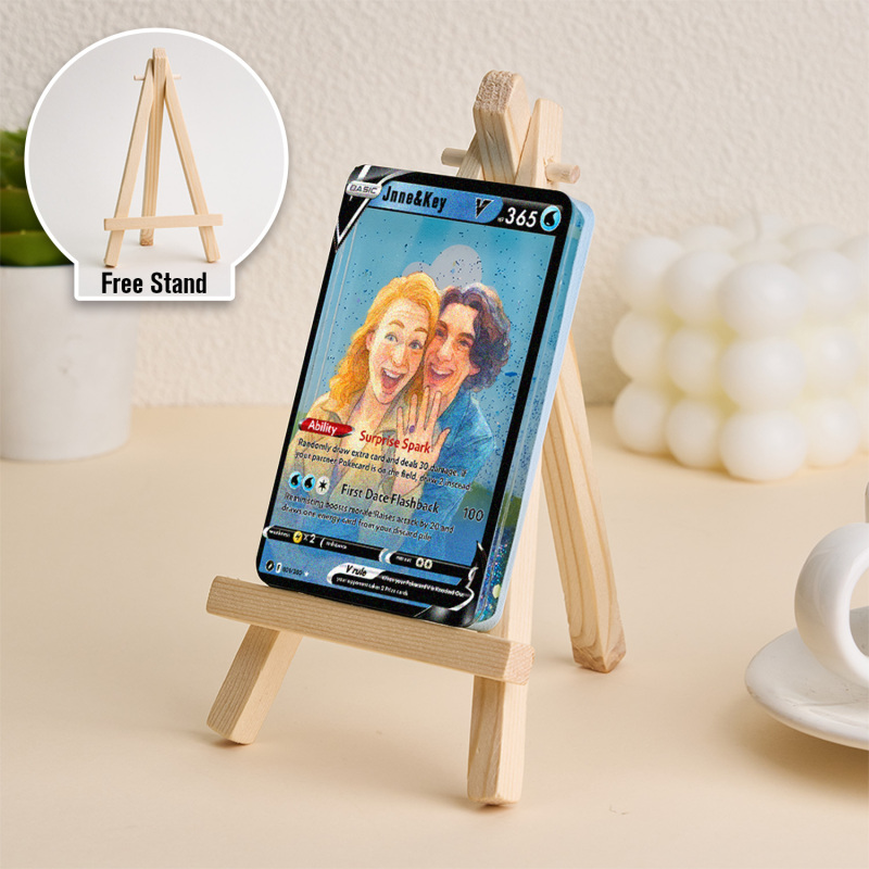 Celebra il tuo amore con la nostra Pokecard Anime 3D Floating Sand V personalizzata per coppie! Questo ricordo unico nel suo genere unisce il fascino degli anime, l'arte della sabbia galleggiante 3D e lo stile delle Pokecard, perfetto per le coppie che condividono la passione per la cultura pop.