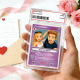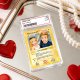 Completo di HP personalizzato, titolo del messaggio e testo di accompagnamento, questo biglietto racconta la tua storia d'amore in modo divertente e creativo.