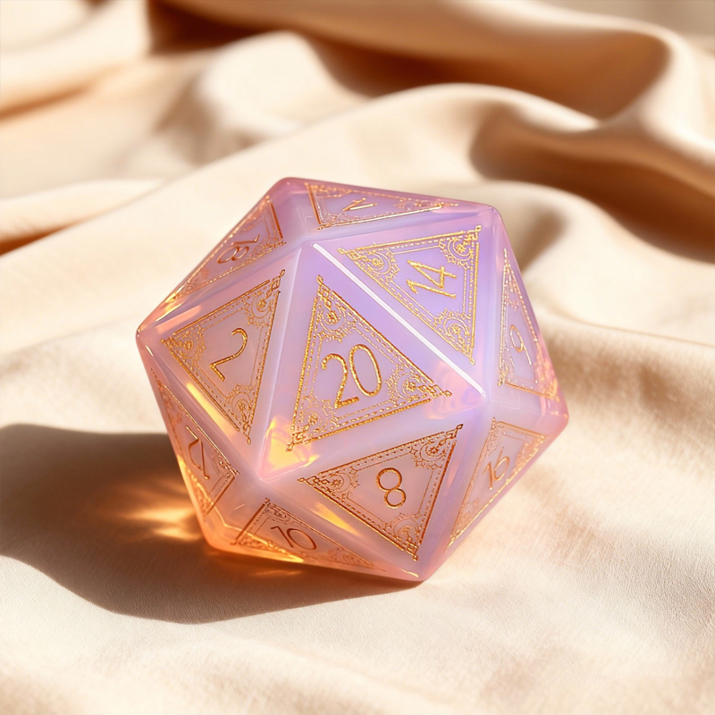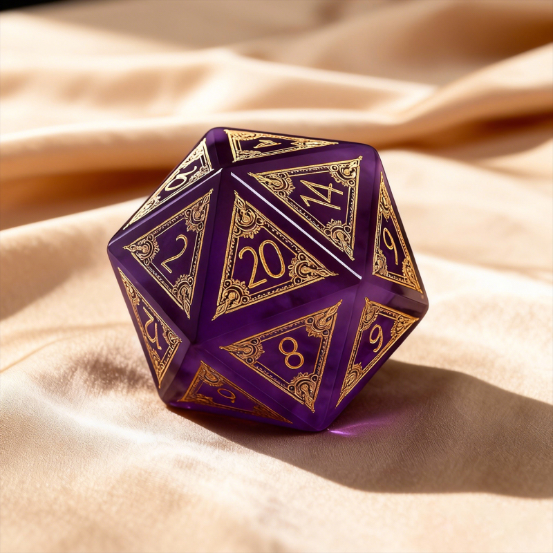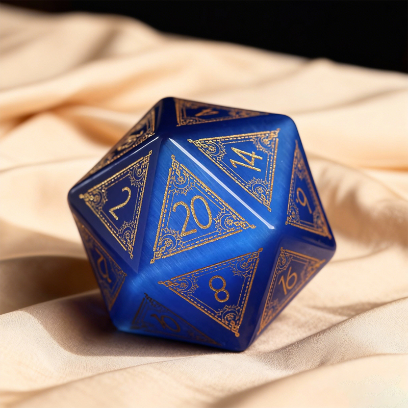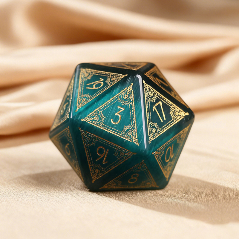Una vera pietra preziosa D20, accuratamente scolpita e incisa sul lato più simbolico, il '20', Un omaggio a quel rotolo perfetto e ai momenti indimenticabili che condividete.