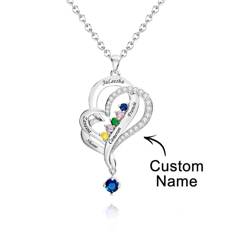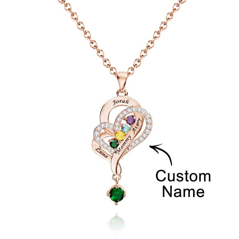 Esistono 12 colori diversi di pietre preziose, corrispondenti alla pietra portafortuna di ogni mese. Le collane con ciondolo a doppio cuore simboleggiano l'amore reciproco, adatte come regali di Natale per le donne, regali per la festa della mamma, regali di compleanno, regali di nozze e regali di anniversario per tua moglie, fidanzata o donna.