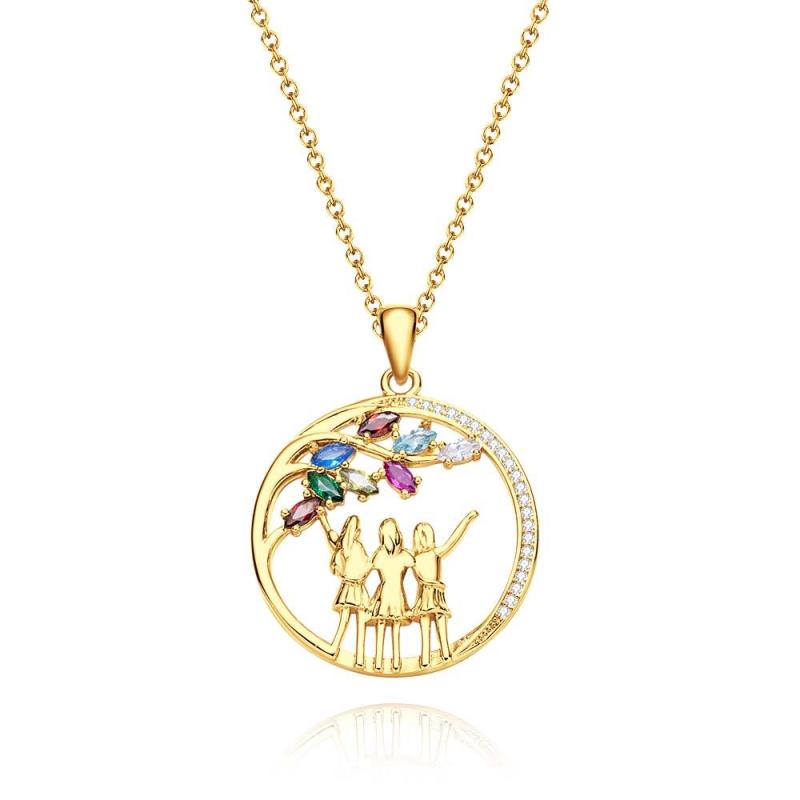 Collana Personalizzata Con Pietre Portafortuna, Tre Ragazze, Collana Con Zirconi, Gioielli, Regali Per Gli Amici