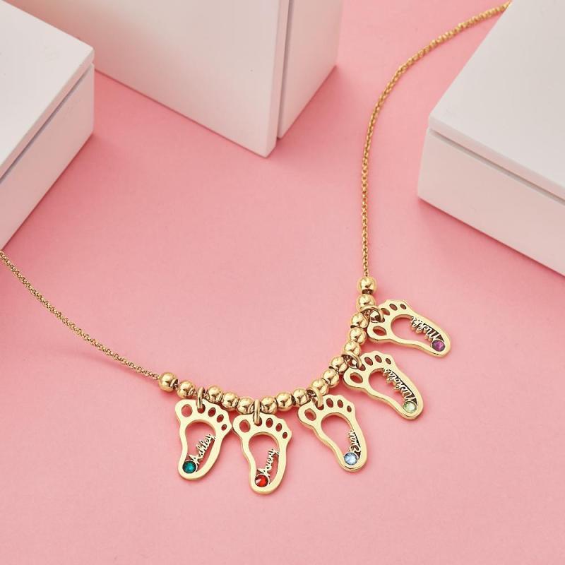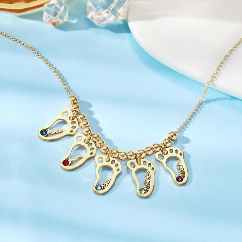 Collana Personalizzata Birthstone Con Nomi Collana Della Madre Regali Commemorativi Argento Placcato Oro 14k (1-6 Piedi)