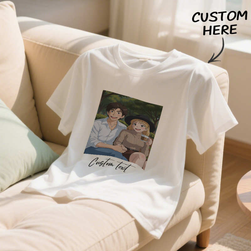 Maglietta Personalizzata Con Foto In Stile Cartone Animato E Testo Personalizzato, Maglietta Personalizzata Con Ritratto Anime, Regalo Per Mamma, Papà E Bambini