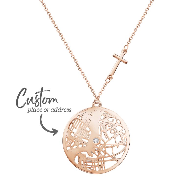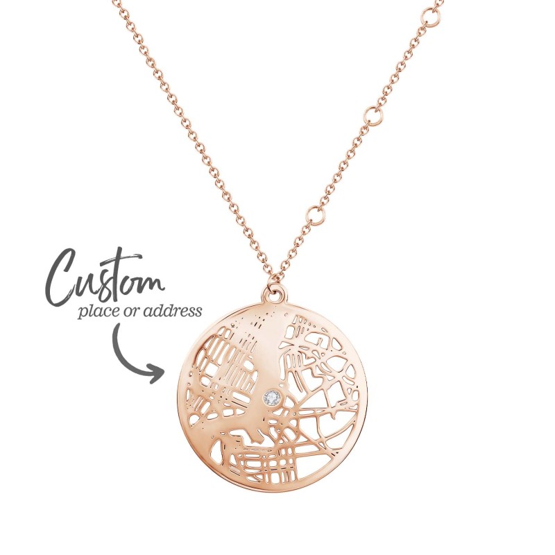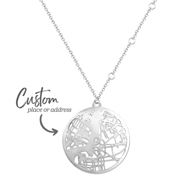 Cattura i ricordi dei tuoi luoghi speciali con la nostra collana personalizzata con mappa rotonda. Questo romantico ciondolo traccia il contorno di una mappa personalizzata all'interno di un cuore, trasformando i tuoi momenti preferiti in un'opera d'arte da indossare. Scegli tra tre stili di catena: semplice, a croce o con perlina a proiezione, per adattarla al suo stile, e aggiungi un tocco di brillantezza con pietre preziose opzionali per un tocco di romanticismo in più. Perfetta come regalo di anniversario o come sorpresa premurosa per lei, questa collana è un ricordo senza tempo che custodirà gelosamente.