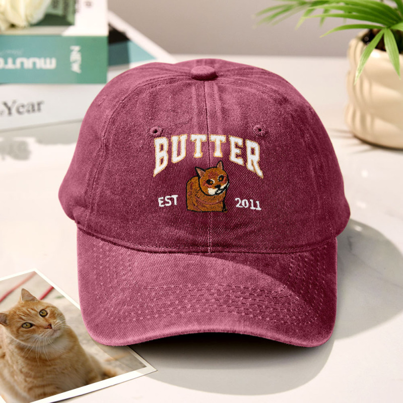 Cappello ricamato personalizzato con il ritratto del tuo animale domestico