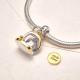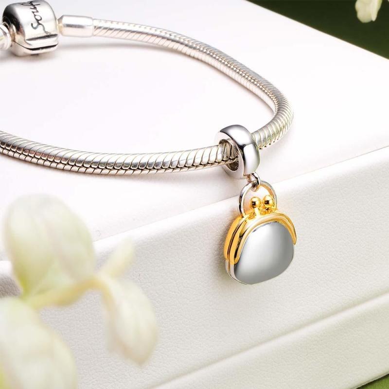 Un piccolo pendente a forma di portafoglio dal design unico. Contiene un disco a forma di moneta che può essere personalizzato con un breve testo, come un nome, una data o una frase speciale, rendendo il ciondolo più personale e significativo.