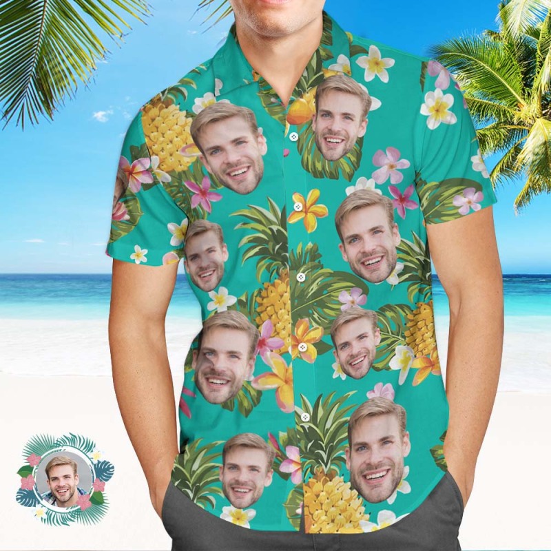Camicia Hawaiana Con Stampa Integrale Su Faccia Personalizzata, Camicie Con Ananas, Regalo Per Lui