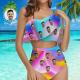 Stampa la tua faccia su un vero bikini estivo con volant da donna. Tirati su il morale o mostra il tuo amore e supporto per la persona amata con la tua fantastica idea.