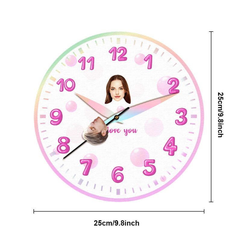 Festeggia il tuo amore ogni minuto con questo eccezionale orologio con quadrante personalizzato! Personalizza il quadrante dell'orologio con il tuo volto e quello del tuo partner e guarda la lancetta dei secondi 'baciare' la persona amata ogni minuto che passa. Questo pezzo unico aggiunge un tocco di fascino sentimentale a qualsiasi arredamento della casa: un regalo di Natale imperdibile!