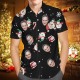 Metti la tua faccia sulla camicia hawaiana natalizia personalizzata indossata da genitori e figli.