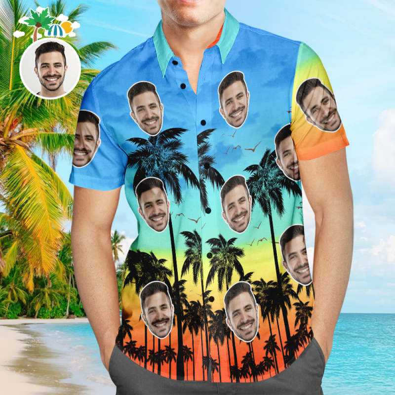 Camicia Hawaiana Con Volto Personalizzato Camicia Da Spiaggia Aloha Beach Palm Party Personalizzata Per Uomo