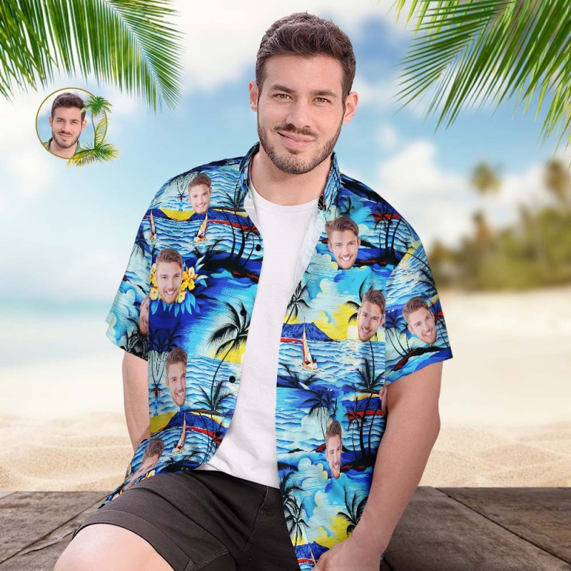 Camicia Hawaiana Con Faccia Personalizzata Camicia Da Spiaggia Hawaiana Con Stampa Integrale Popolare Da Uomo, Regalo - Romantica Vista Sul Mare