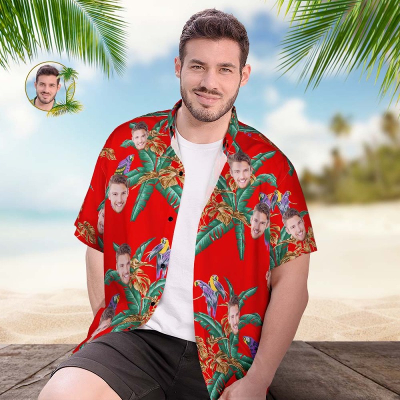 Camicia Hawaiana Con Faccia Personalizzata Regalo Da Uomo Con Stampa Integrale Popolare Per Camicia Da Spiaggia Hawaiana - Alberi Di Cocco E Uccelli