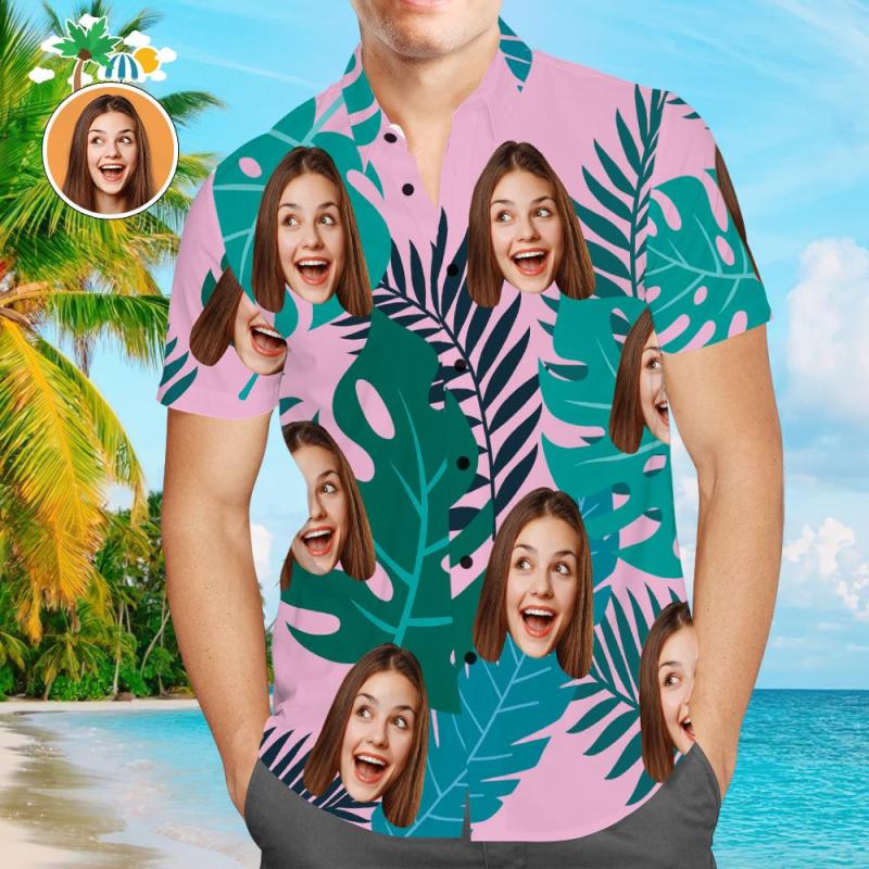 Camicia Hawaiana Con Volto Personalizzato Camicie Con Palme Camicie Da Spiaggia Tropicale Da Uomo