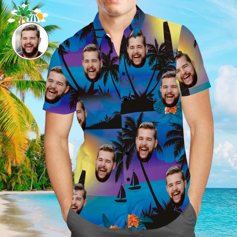 Camicia Hawaiana Con Faccia Personalizzata, Camicia Da Spiaggia Per Feste Estive, Regalo Per Uomo