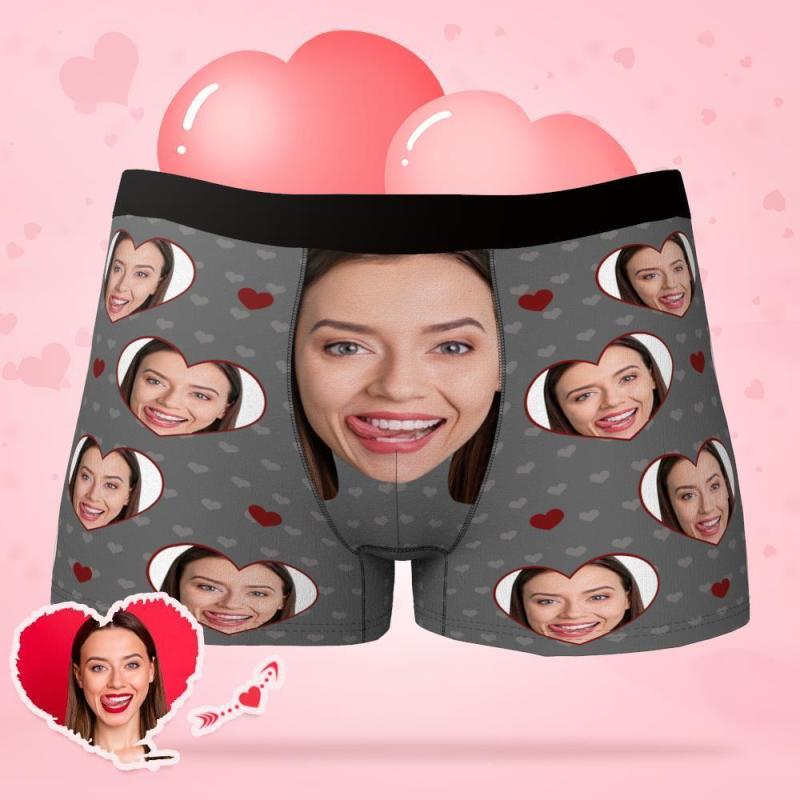 Slip da uomo intimo personalizzato con foto viso. Pantaloncini boxer cuore amore di compleanno