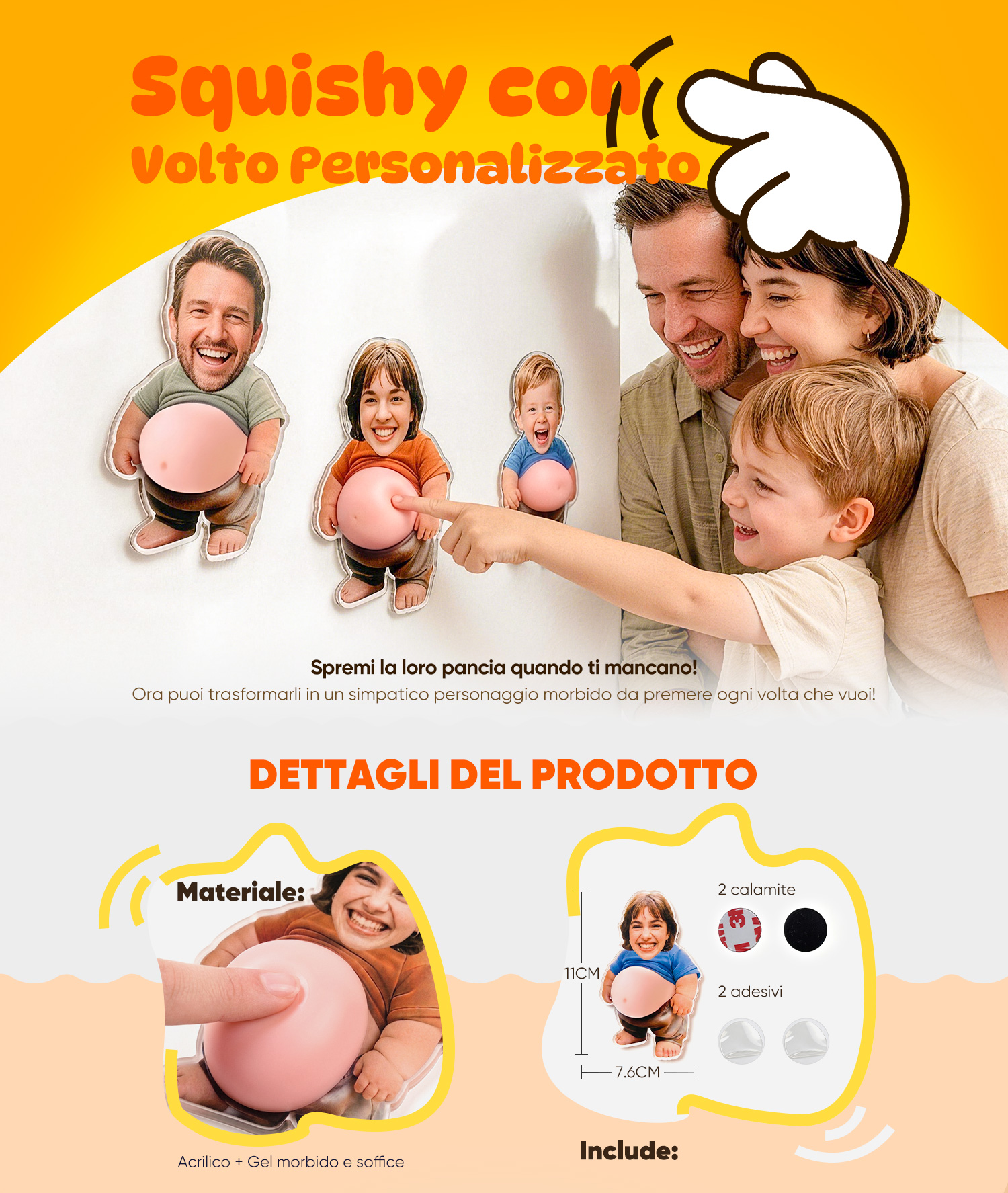 Questi adesivi per auto personalizzati con la pancia morbida e comprimibile ti permettono di caricare una foto, ritagliare il viso e trasformarlo in un adorabile personaggio con una pancia morbida e comprimibile.