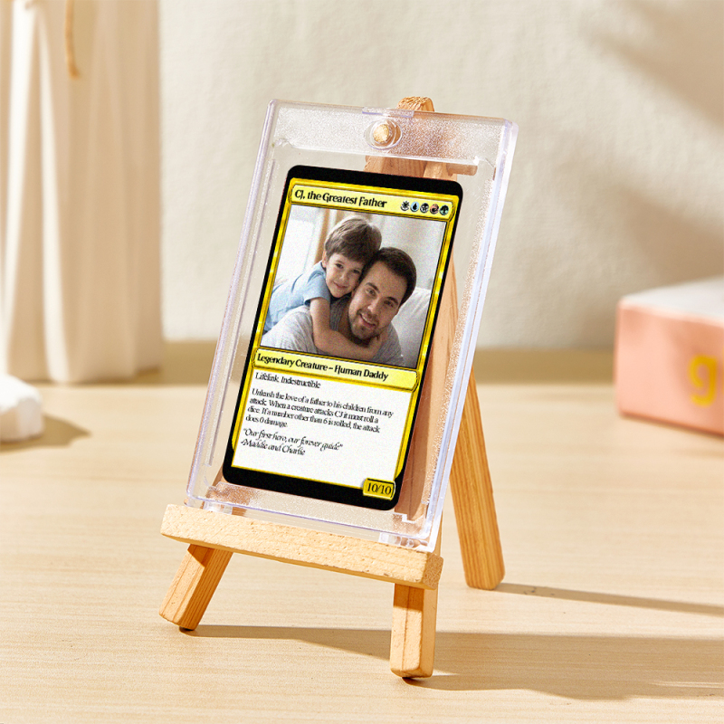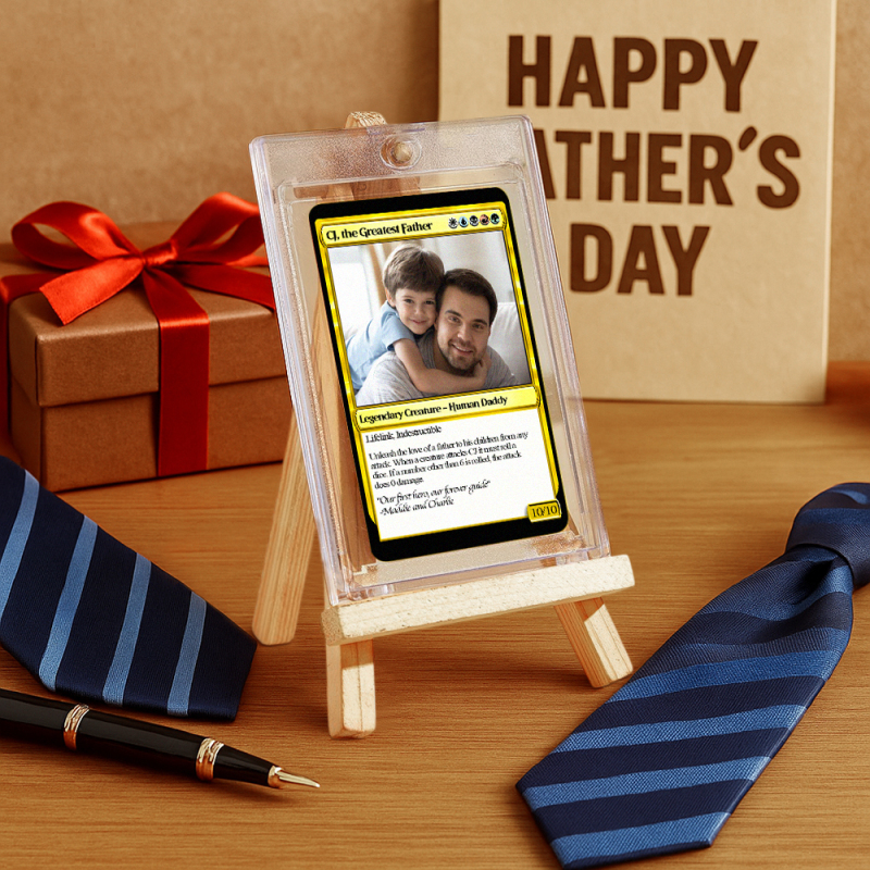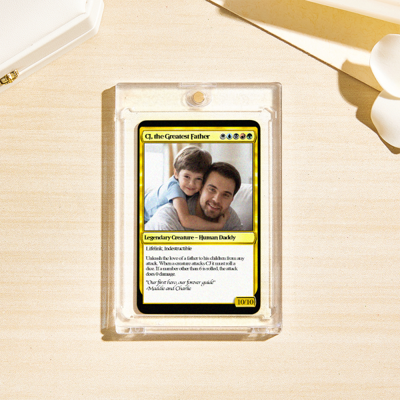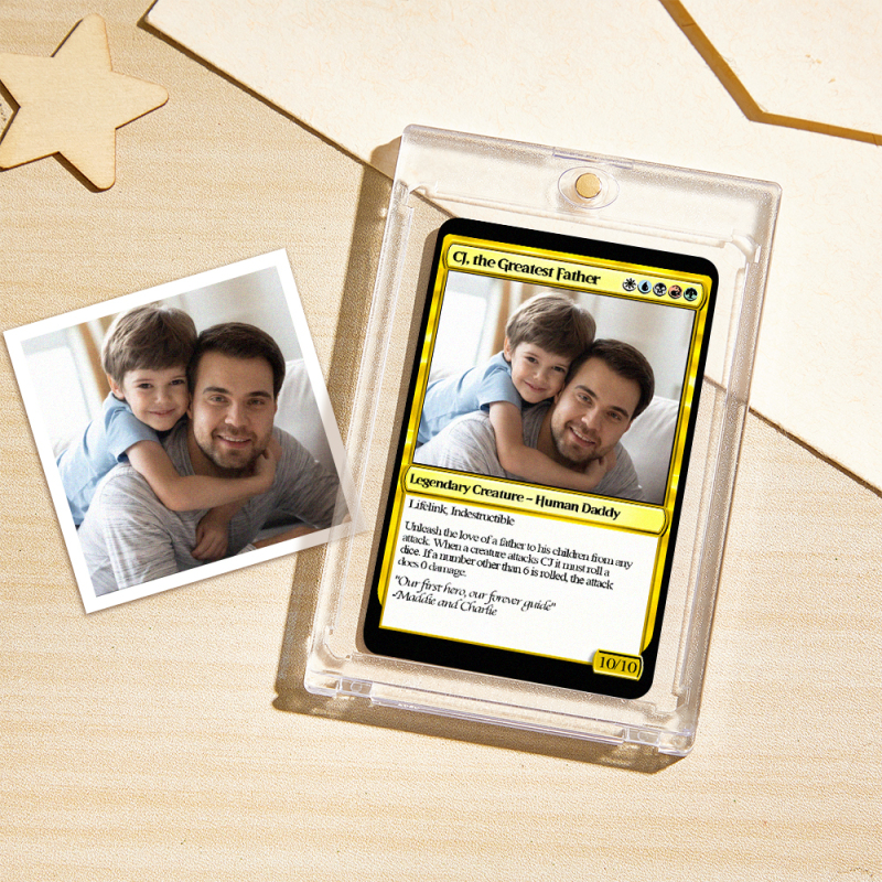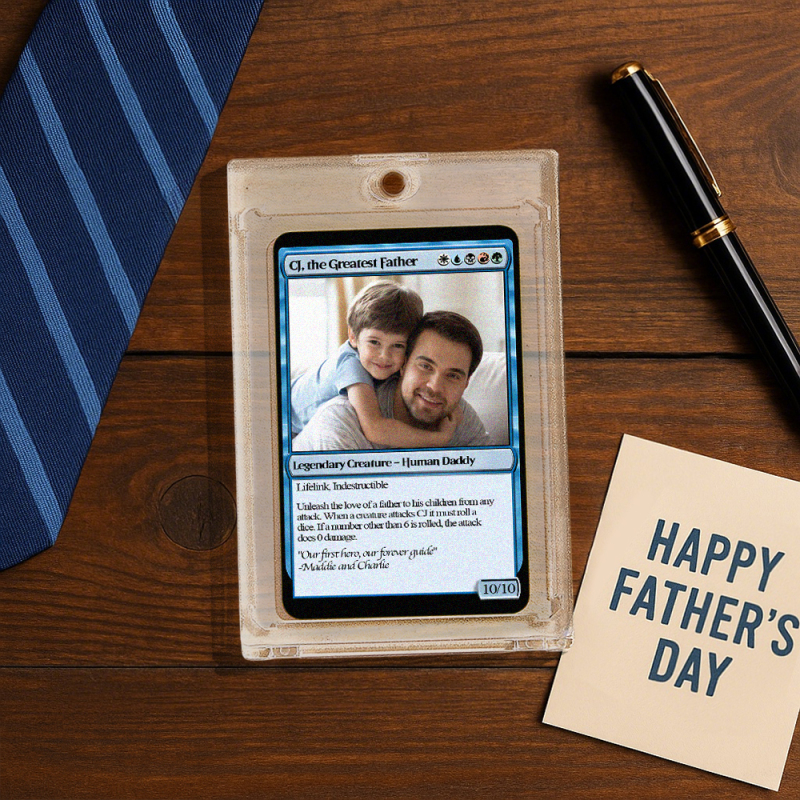 Crea un regalo unico per papà con un biglietto personalizzato in stile fantasy! Personalizzalo con la tua foto e un testo a tua scelta per un ricordo davvero speciale. Perfetto per la Festa del Papà o per i compleanni, con una finitura laminata di alta qualità per una maggiore brillantezza.