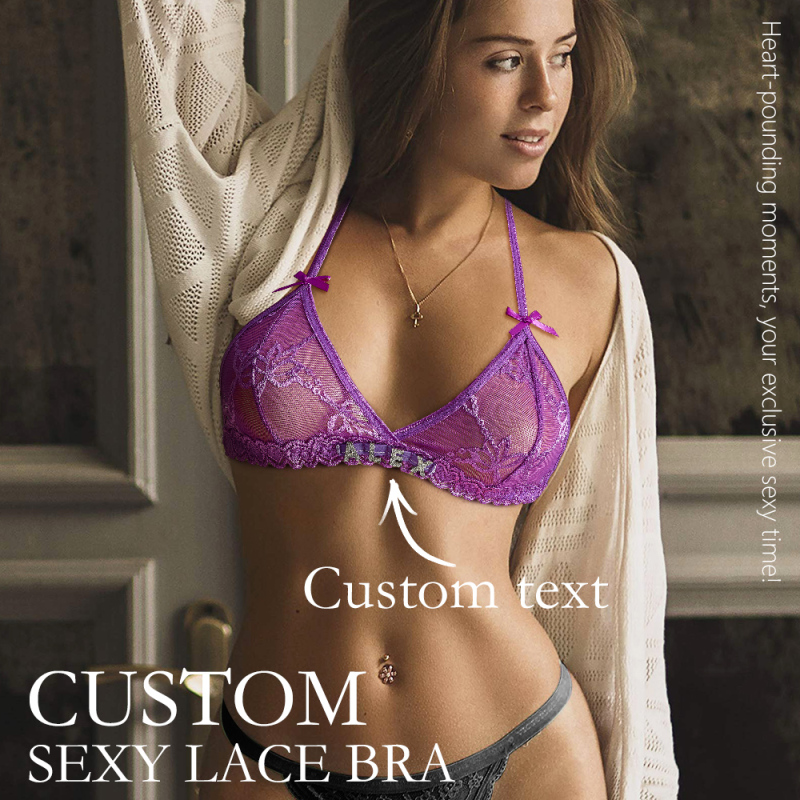 Reggiseno Di Pizzo Personalizzato Con Gioielli In Cristallo, Lettera, Nome, Pizzo, Biancheria Intima Trasparente, Regalo Per Lei