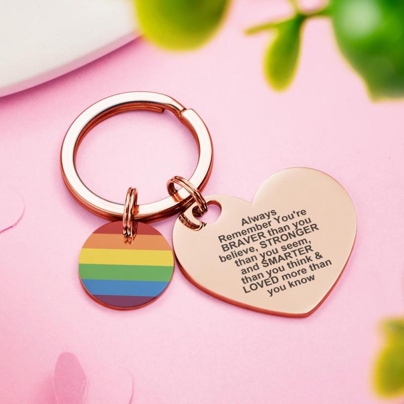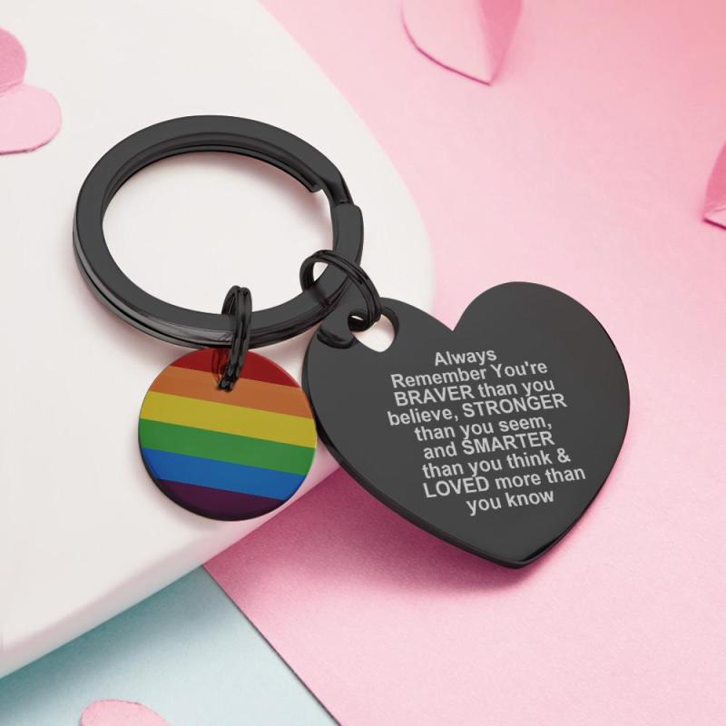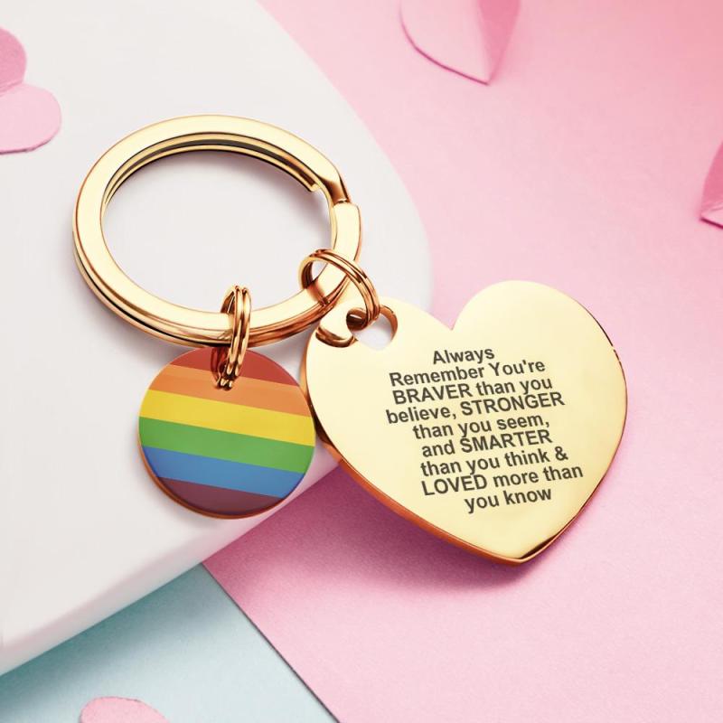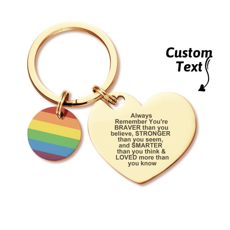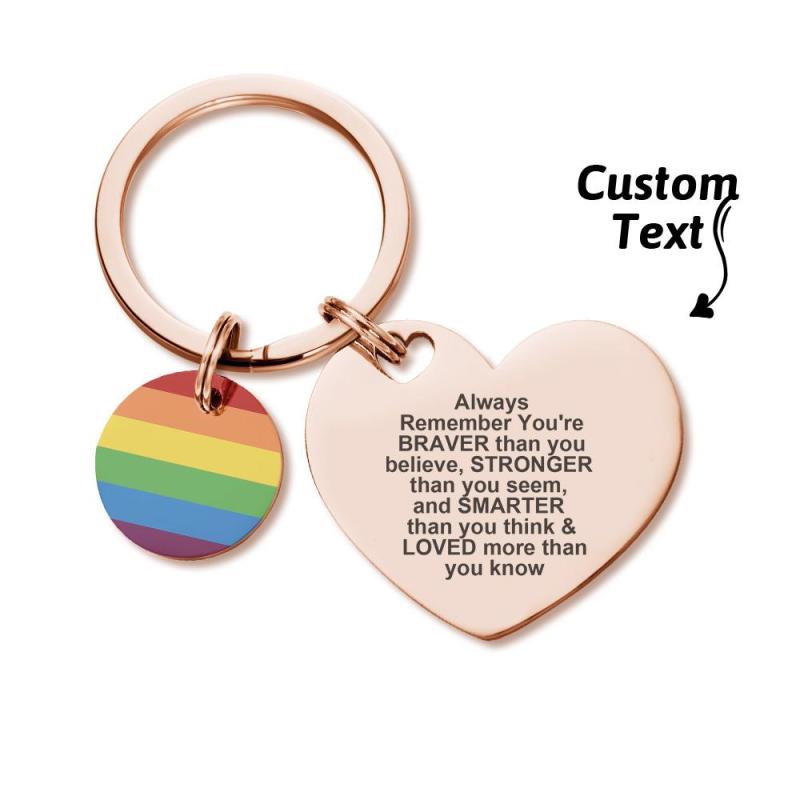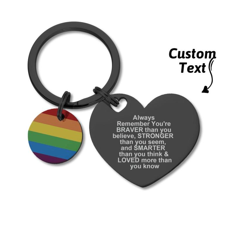 Mostra il tuo orgoglio con questo portachiavi LGBT Rainbow con incisione personalizzata. Realizzato in metallo resistente e caratterizzato da un colorato design arcobaleno, questo portachiavi è ideale per essere personalizzato con il tuo testo speciale. Un regalo personalizzato perfetto per qualsiasi occasione LGBT o pansessuale.