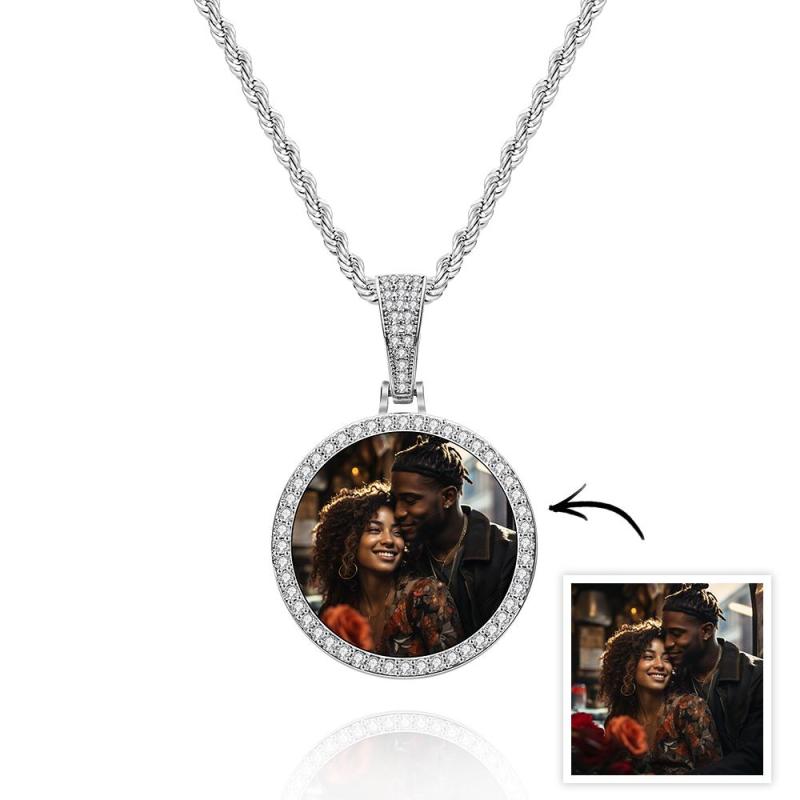 Collana E Pendente Con Cerchio Fotografico Su Misura Grande Pendente Rotondo Hip-hop Regalo Di Gioielli Con Zirconi Cubici Ghiacciato Per Lui