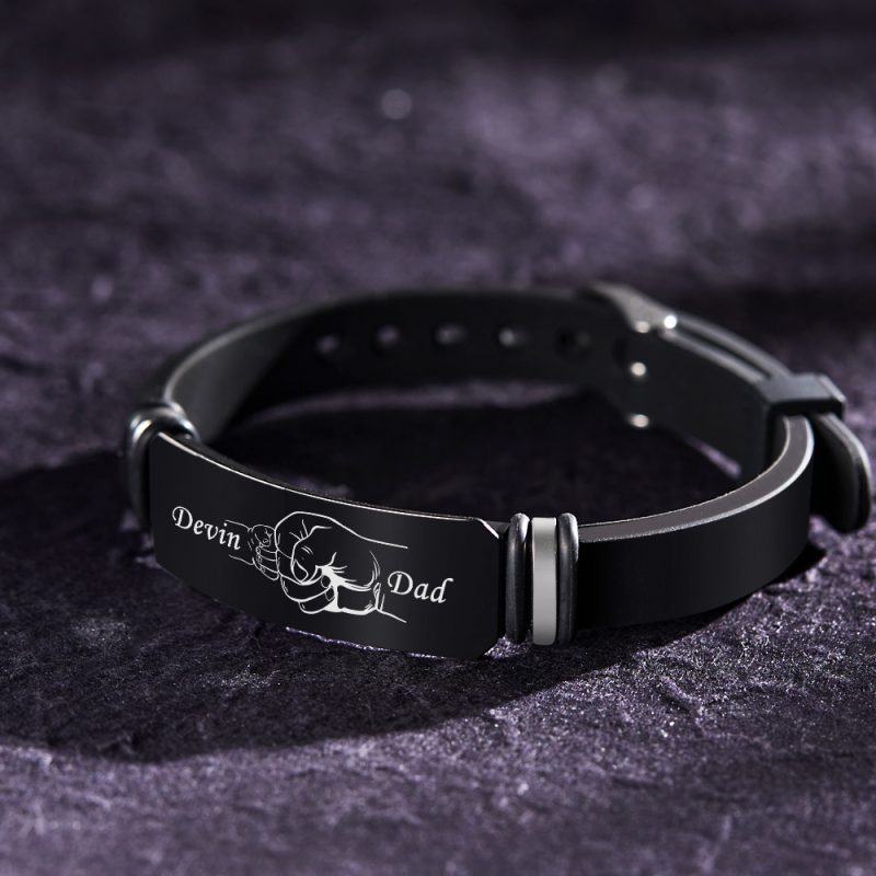 Ti presentiamo il nostro braccialetto nero inciso personalizzato, un'opzione regalo personalizzata e sentita progettata esclusivamente per gli uomini speciali della tua vita. Questo raffinato braccialetto combina l'eleganza senza tempo di un accessorio classico con il tocco sentimentale di un caro ricordo.