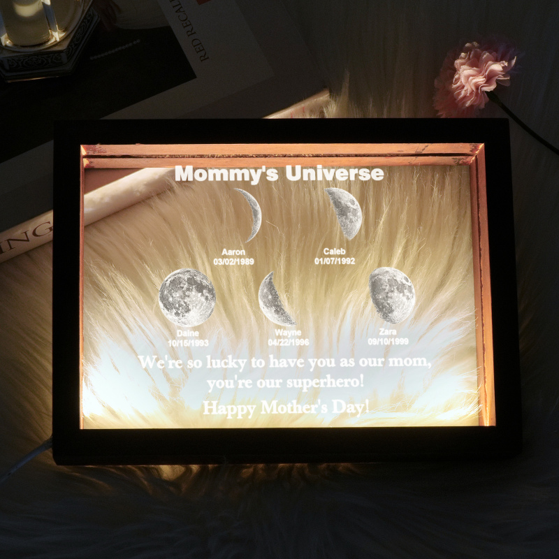 Questa luce notturna unica è il modo perfetto per celebrare i momenti speciali della vita, rendendola un regalo indimenticabile per la Festa della Mamma. Mentre la luna attraversa le sue fasi, simboleggia il tempo, la crescita e la connessione, proprio come l'amore di una madre.