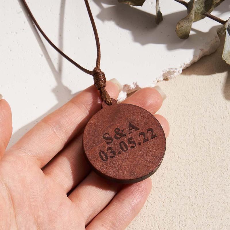 Cattura i tuoi ricordi più cari con il nostro ciondolo in legno con collana fotografica personalizzata. Il legno di alta qualità emette un profumo naturale, rendendolo il regalo perfetto per i tuoi cari o per te stesso. Personalizza il retro con incisioni personalizzate, creando un pezzo davvero unico. Ideale per sorelle, mamme, nonne e migliori amiche.