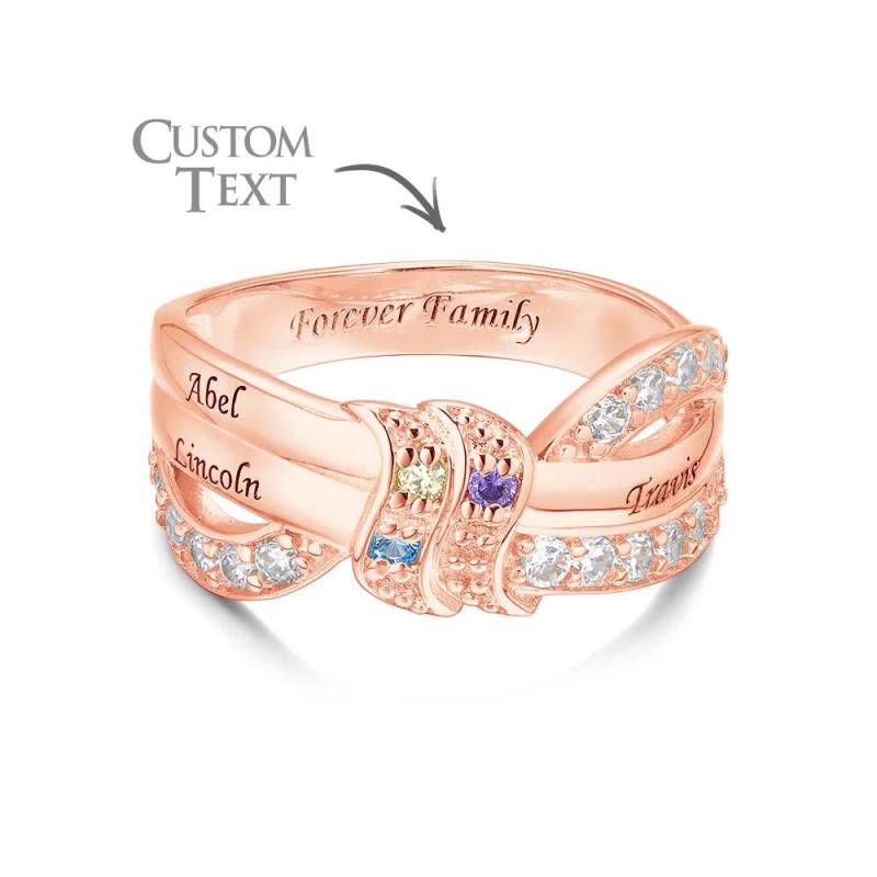 Nome Personalizzato E Testo Anello Con Pietra Portafortuna Placcato In Oro Rosa Anello Di Famiglia Personalizzato Regalo Per Lei