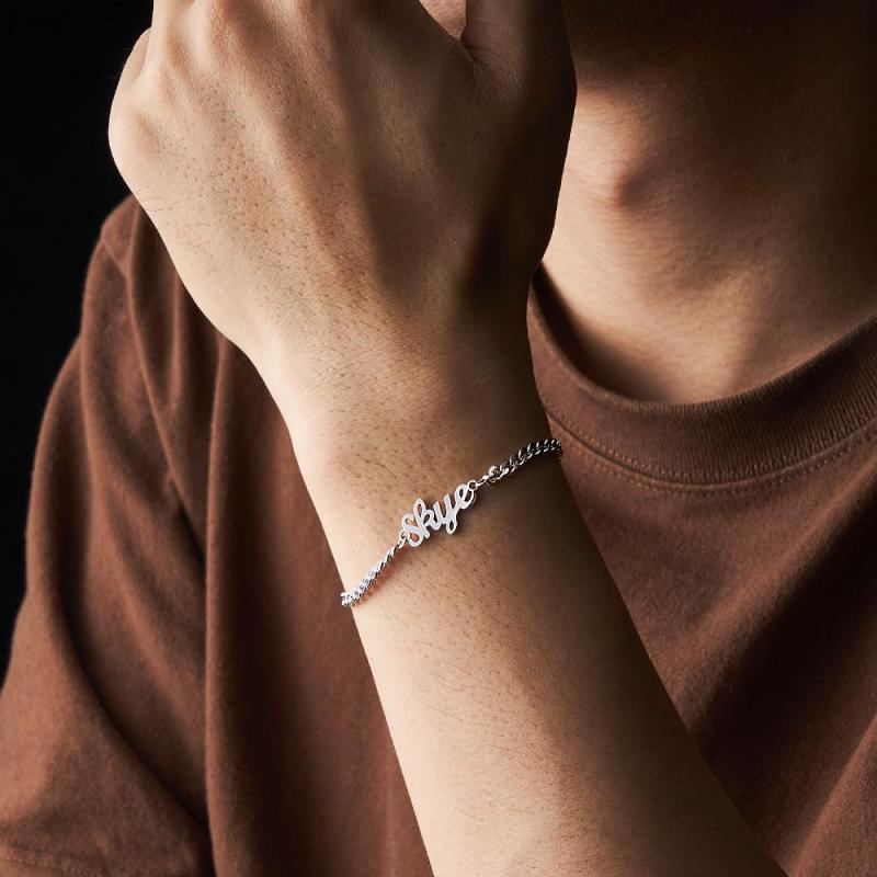 Scopri il fascino del nostro braccialetto con nome personalizzato, un gioiello che combina magnificamente individualità e raffinatezza.