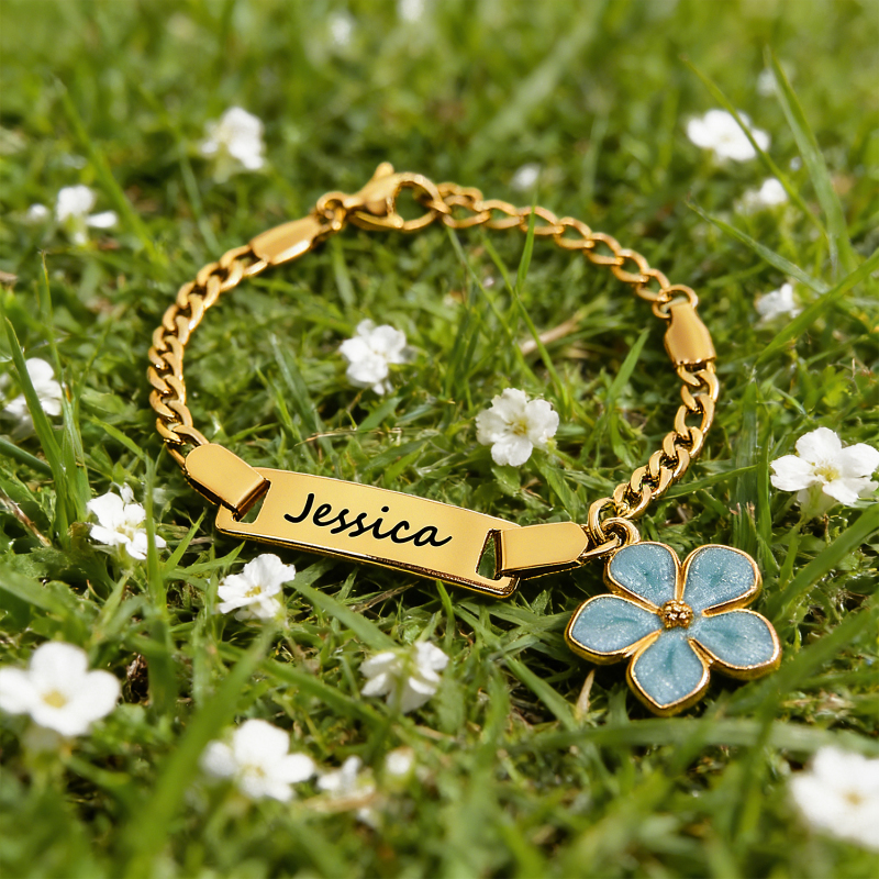 Il vero pezzo forte è il grazioso Ciondolo Personalizzato a Forma di Margherita, che può essere delicatamente inciso con il suo nome. Questa dolce margherita, simbolo di innocenza e gioia, unita al suo nome speciale, trasforma il braccialetto in un ricordo prezioso. Realizzato con cura con materiali ipoallergenici e con una chiusura sicura e adatta ai bambini, è pensato per coniugare stile e sicurezza.