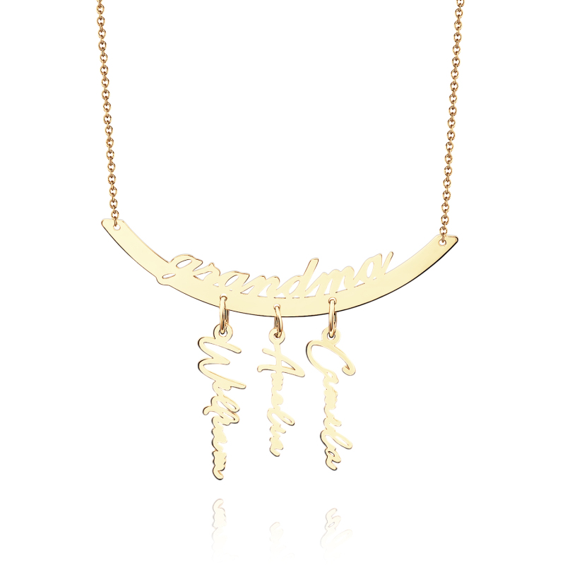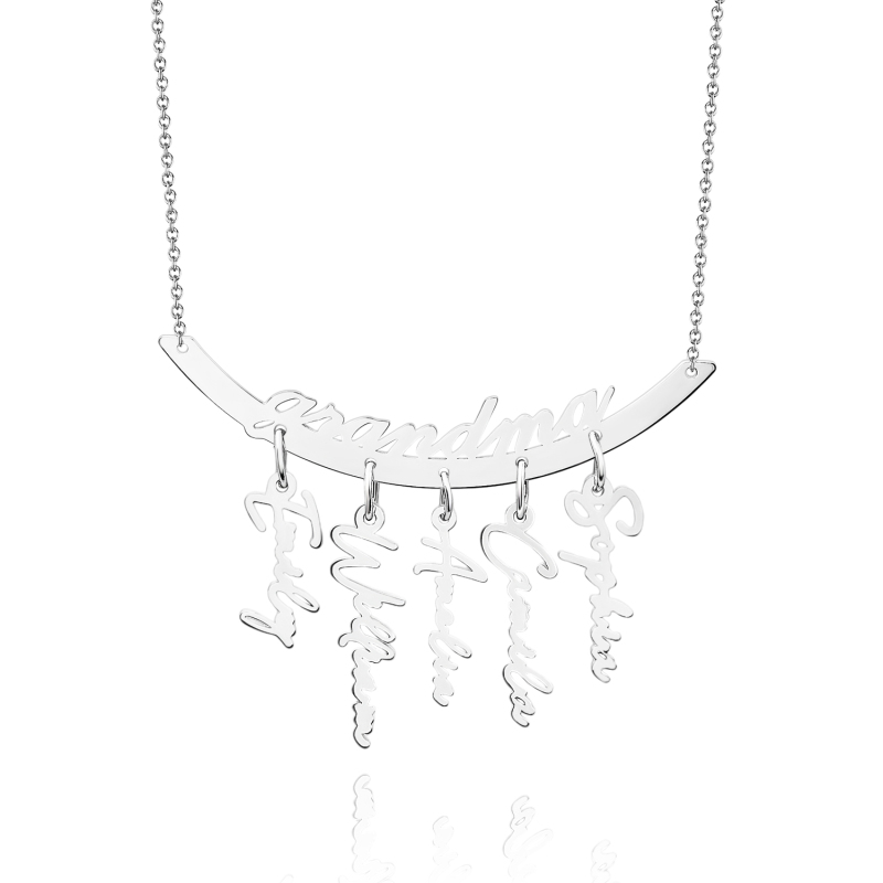 Celebra i tuoi cari con questa collana pendente personalizzata per la famiglia. Personalizzabile con ciondoli da 1 a 7 nomi, è un regalo sentito per la Festa della Nonna o della Mamma. Realizzato per mettere in mostra il legame unico della tua famiglia, è un ricordo perfetto per ogni occasione.