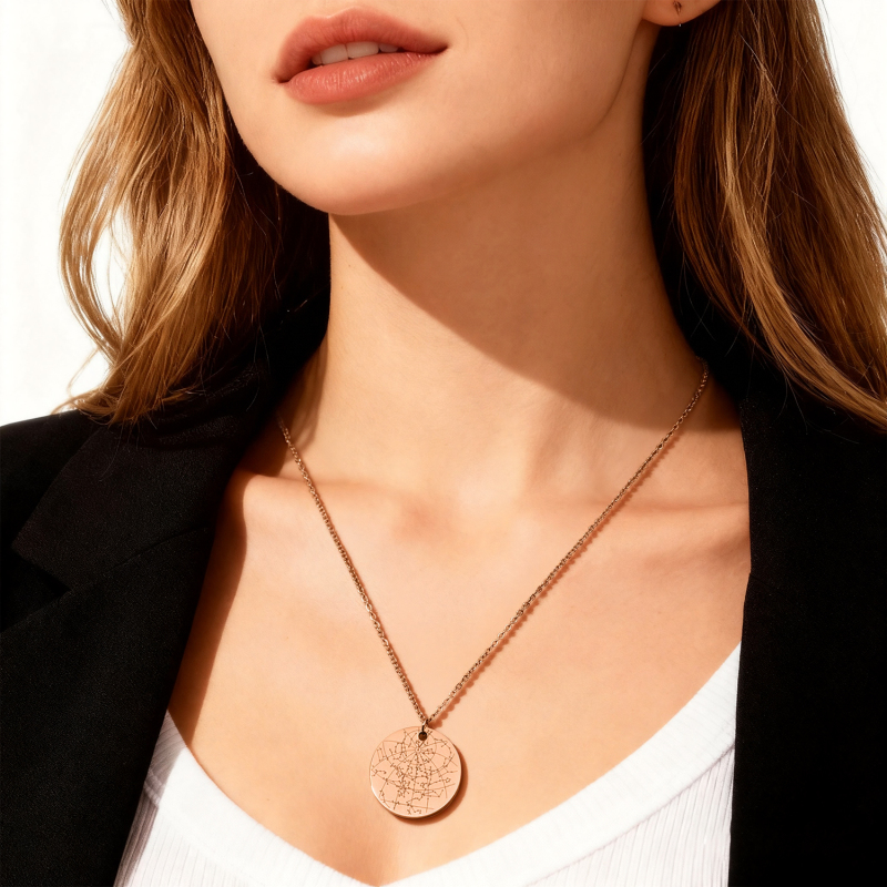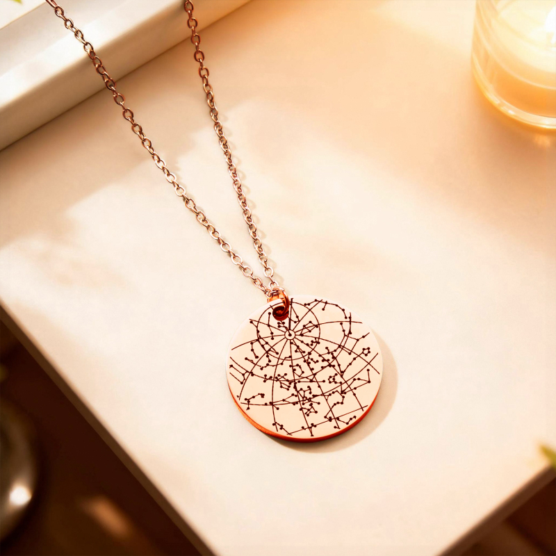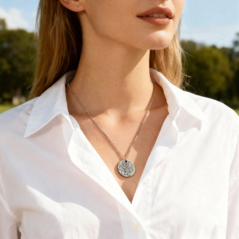 Cattura un momento tra le stelle con la nostra collana personalizzata con castone a forma di cielo notturno. Questa collana con mappa stellare è un ricordo premuroso e personalizzato che commemora splendidamente una data speciale, perfetta per il suo anniversario, compleanno o qualsiasi altro evento importante. Ogni collana presenta un ciondolo a castone che racchiude una mappa stellare precisa, con la data e il luogo da te scelti, creata con cura e un tocco di eleganza celeste. Realizzata per durare, è un 'regalo per lei' significativo che custodirà per sempre. Che sia abbinato ad altri gioielli o indossato da solo, questo gioiello senza tempo aggiunge un tocco di luce discreta ai momenti quotidiani e alle occasioni memorabili. Un regalo unico e sentito che trasforma il cielo notturno in una storia personale da portare sempre con sé.