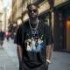 T-shirt Vintage Personalizzata Con Foto E Nome. T-shirt Vintage Con Galassia Cosmica E Luna Crescente, Regalo Per Uomo