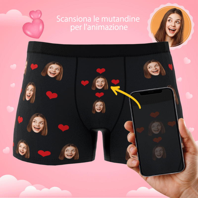 Boxer Con Foto Personalizzati Da Uomo, Intimo Per Il Viso Con Cuore Regali Di Natale - Uomo