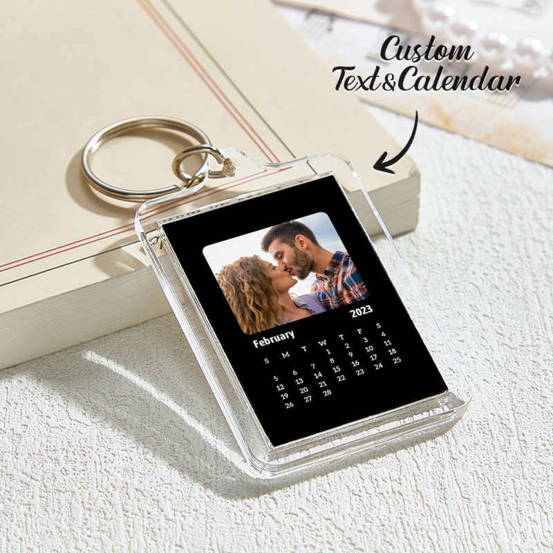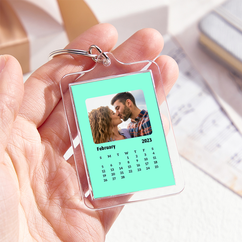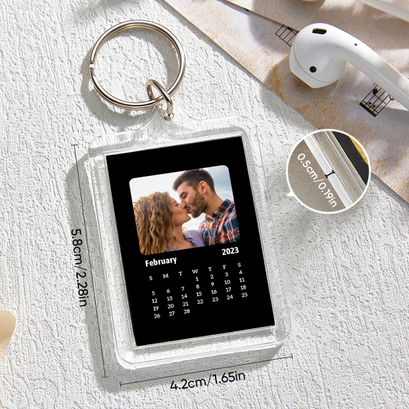 Il portachiavi con calendario fotografico personalizzato può aiutarti a catturare un momento che dura per sempre. Il portachiavi con foto personalizzato è progettato per offrirti un modo semplice e veloce per creare un souvenir unico e utile. Il prodotto è realizzato in acrilico e può essere inciso con la data speciale. È un regalo eccezionale per tutte le età, perfetto per la festa del papà, l'anniversario di matrimonio, Natale, la nascita di un bambino, il compleanno o qualsiasi altra occasione.