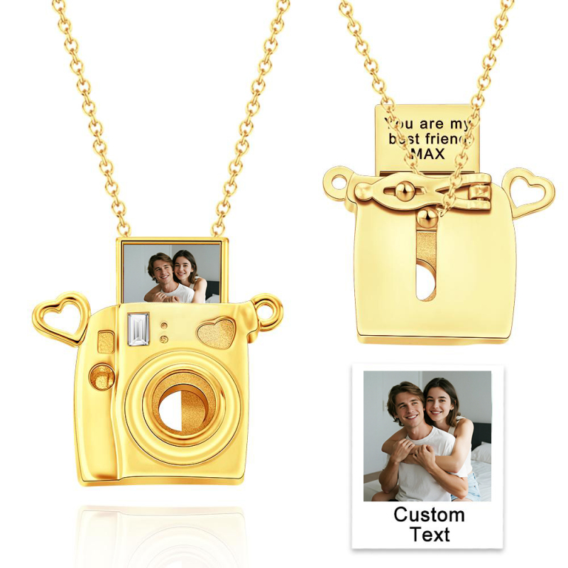 Cattura i ricordi con stile con la nostra collana personalizzata con incisione fotografica a forma di macchina fotografica. Questo elegante ciondolo presenta un piccolo ciondolo finemente decorato con una macchina fotografica, personalizzabile con la tua foto, trasformando un momento prezioso in un ricordo senza tempo. L'immagine incisa è delicatamente incisa sul ciondolo, creando un pezzo unico che brilla di sentimento e raffinatezza. Perfetta da indossare tutti i giorni o come regalo premuroso, questa collana combina senza sforzo una personalizzazione significativa con un design chic e indossabile.