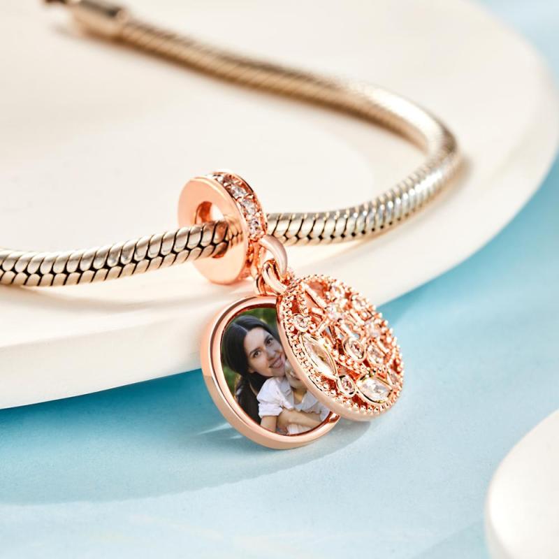 Ciondolo Con Foto Personalizzata Con Ciondolo A Forma Di Luna E Stella Placcato In Oro Rosa, Regalo Per La Mamma