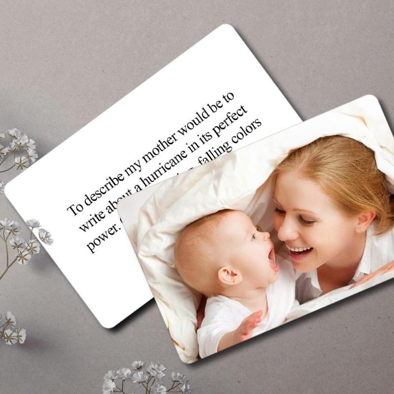 Una cartolina fotografica perfetta per la festa del papà, la festa della mamma, per il fidanzato! Personalizza con la tua foto preferita e crea un regalo bellissimo e unico per papà che possono infilare nel loro portafoglio e tenere con sé per sempre. Incorporiamo l'immagine in modo permanente utilizzando inchiostro UV che non si stacca né graffia. Le carte da inserire sono leggere e si adattano perfettamente al tuo portafoglio.