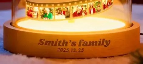 Con il suo design pulito ed elegante, questa versione si concentra esclusivamente sulla luminosità cinematografica dei tuoi ricordi: niente rami, solo luce, calore ed emozione. Perfetta per i minimalisti e gli amanti della fotografia che adorano un centrotavola natalizio elegante e moderno.