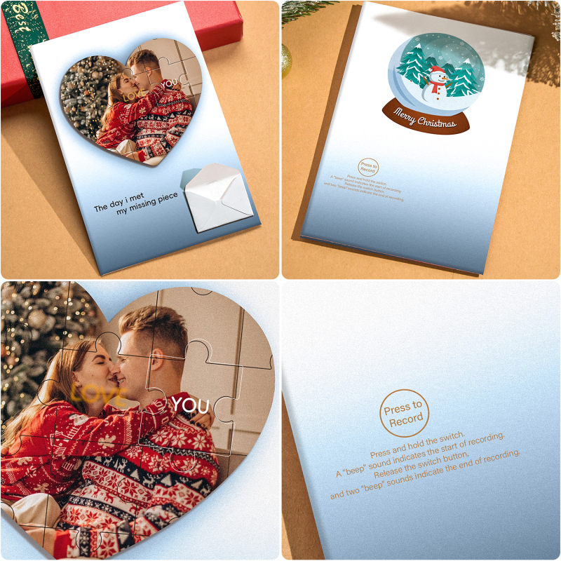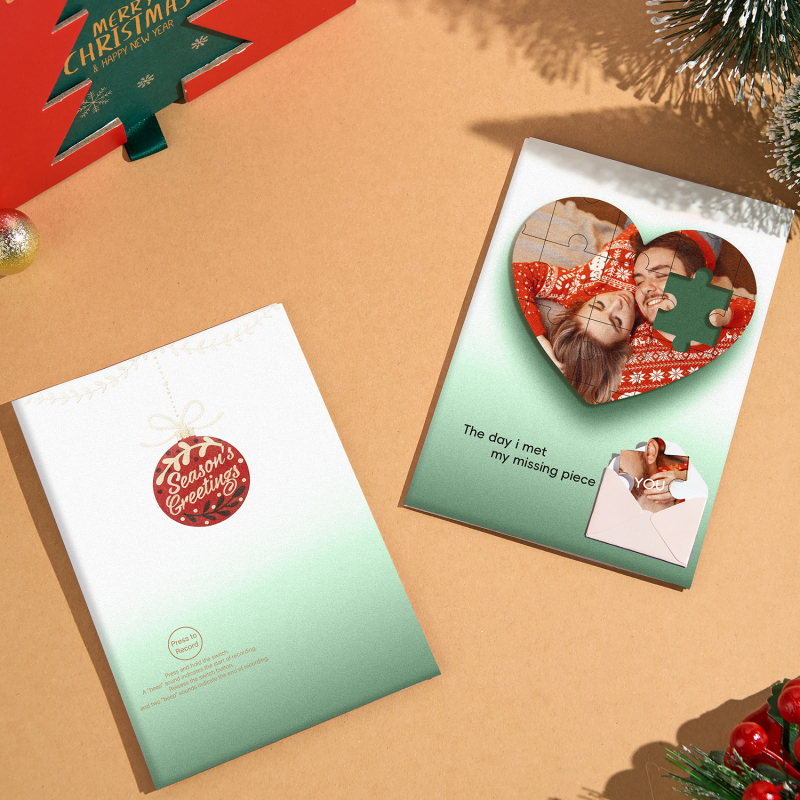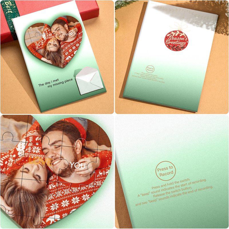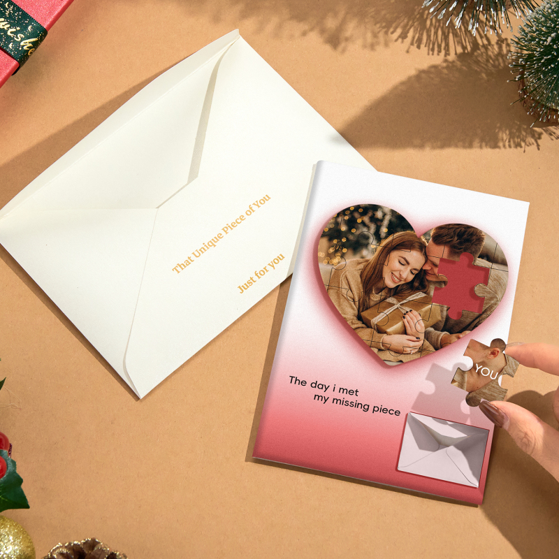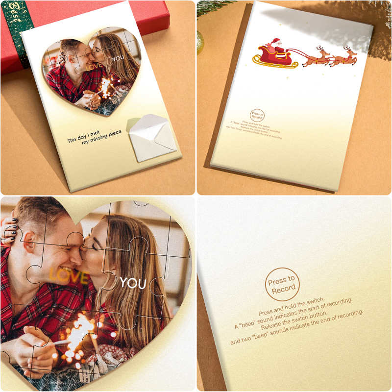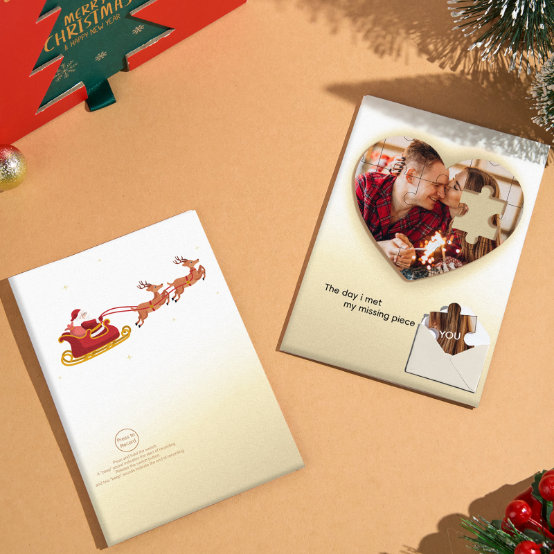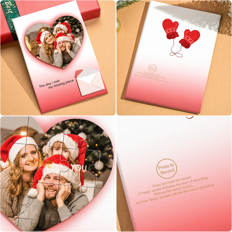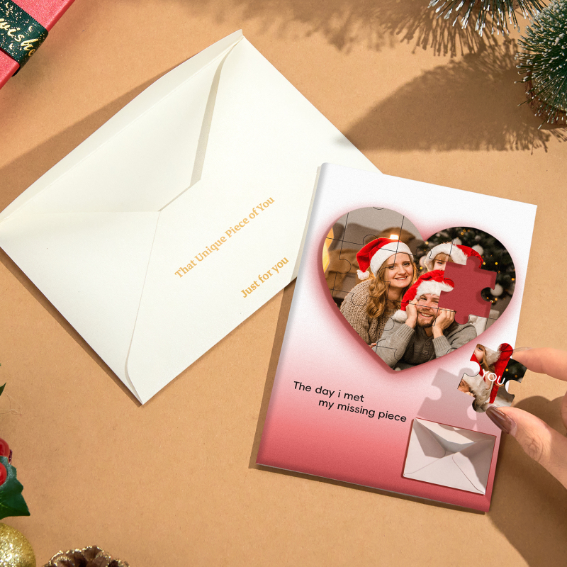 Crea una sorpresa natalizia commovente con il nostro biglietto d'auguri personalizzato con foto puzzle e il biglietto d'auguri natalizio personalizzato! 🎄✨
