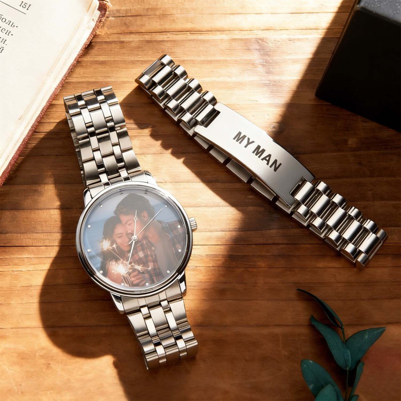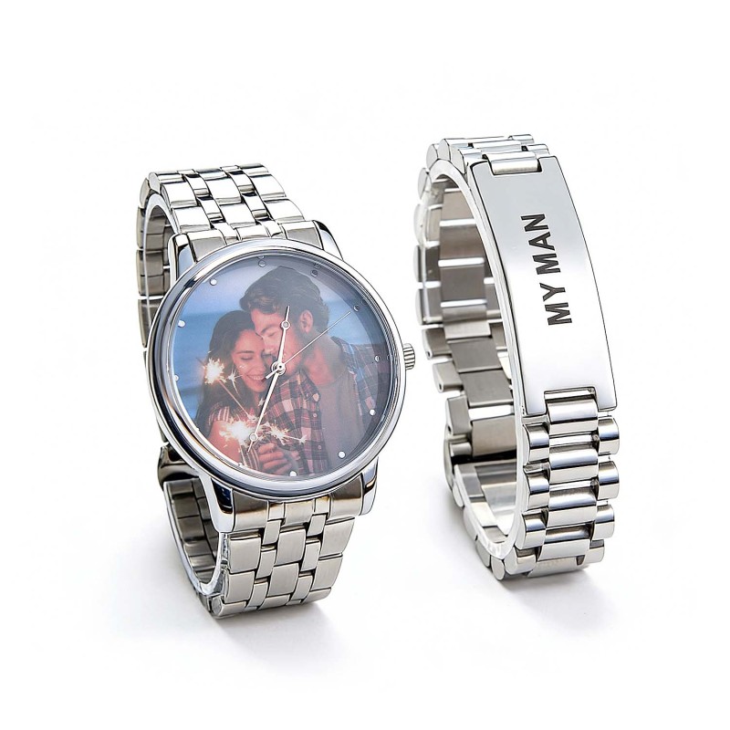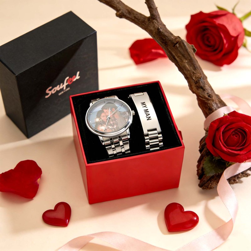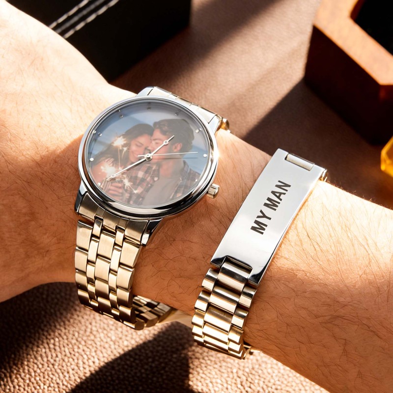 Regala un amore duraturo con questa confezione regalo con orologio e bracciale personalizzati: gioielli da uomo perfetti come regali di Natale per fidanzato, marito, padre o figlio! Incidi le tue foto preferite per aggiungere un tocco di sentimento, unendo un design elegante alla praticità quotidiana. La confezione regalo completa semplifica il processo di creazione, offrendo un modo significativo per onorare gli uomini speciali della tua vita. Un regalo unico e memorabile per le festività!