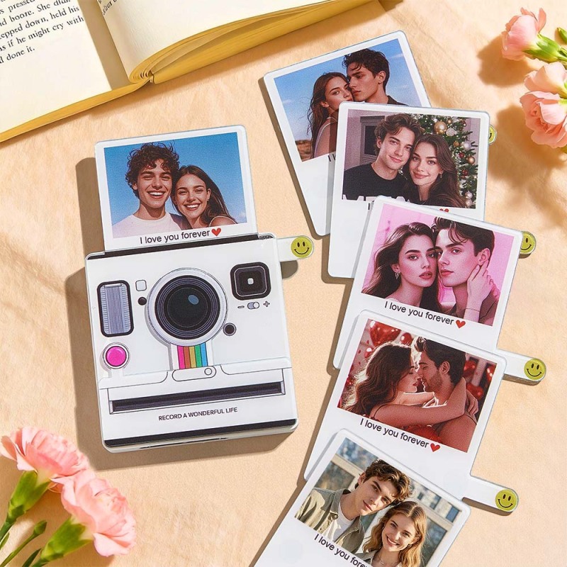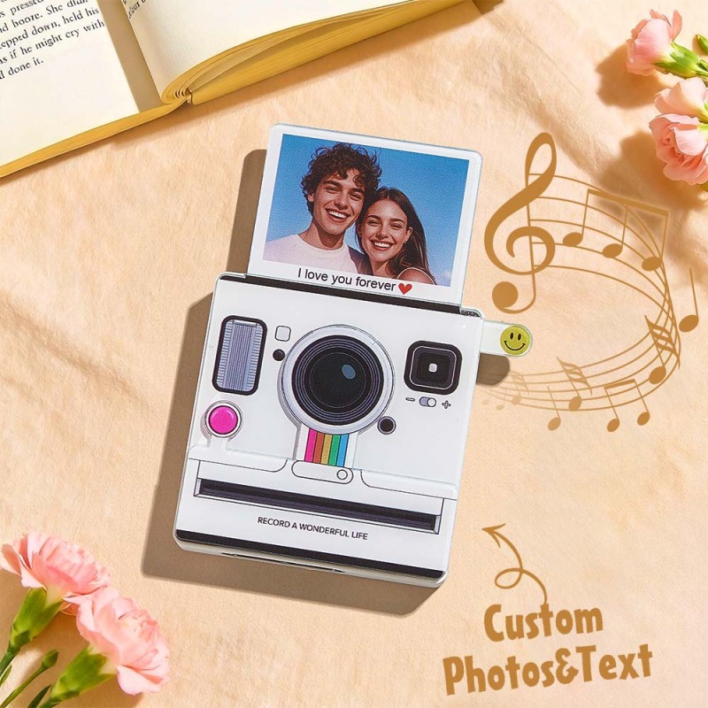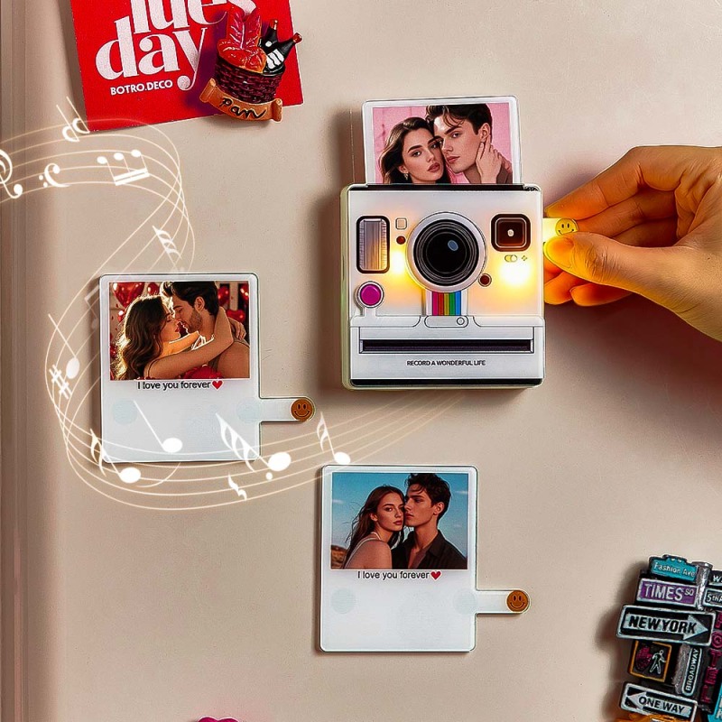 Dai vita ai tuoi ricordi! Questo magnete da frigorifero interattivo in stile Polaroid ti permette di caricare la tua foto preferita. Fai scorrere la piccola leva in basso a destra per rivelare la foto mentre riproduce automaticamente la musica che hai scelto. Il magnete si si illumina durante la riproduzione, creando un effetto magico. Scegli da 1 a 6 canzoni per personalizzare la tua esperienza: un regalo perfetto per compleanni, festività o qualsiasi occasione speciale!